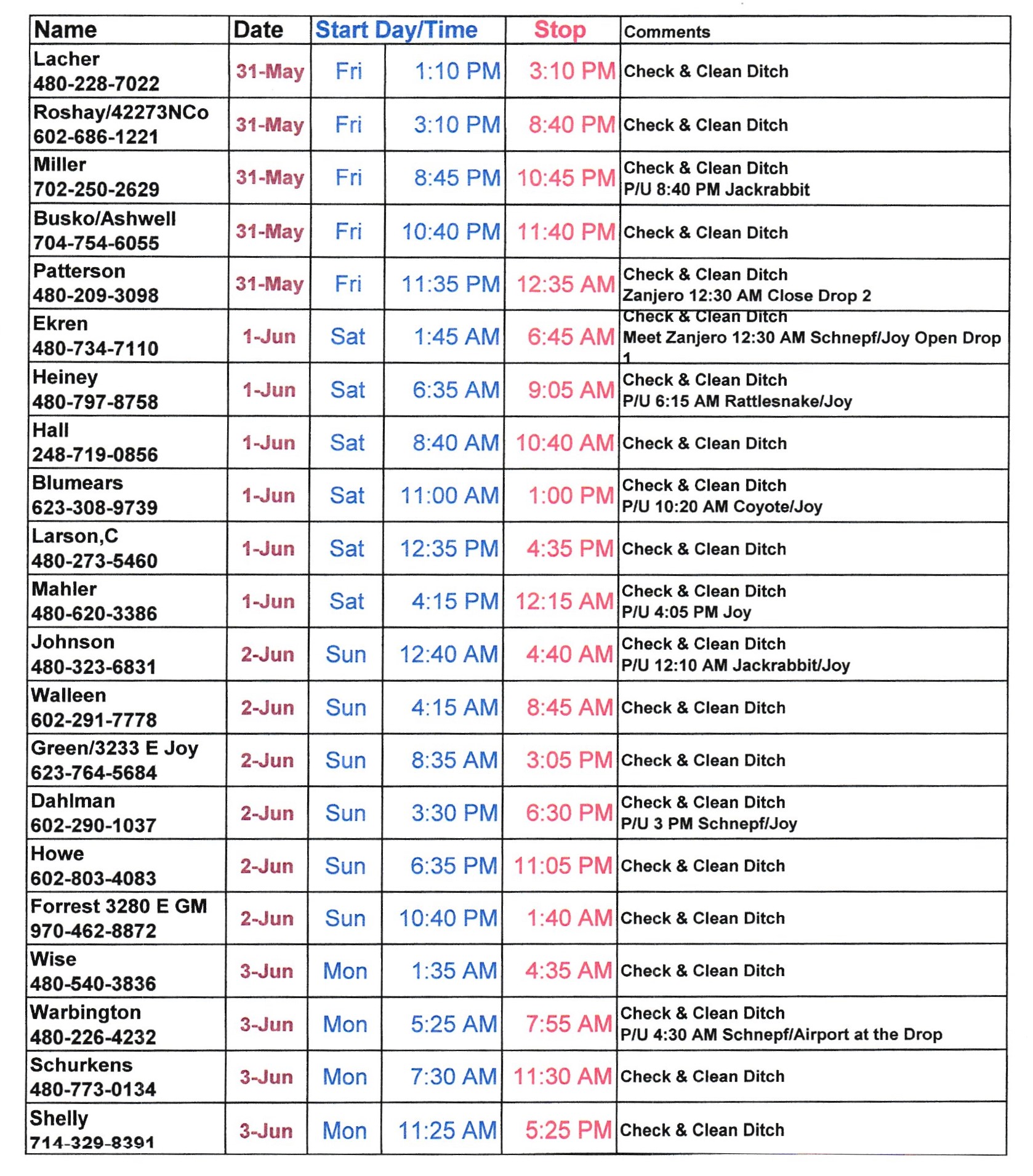 Schedule