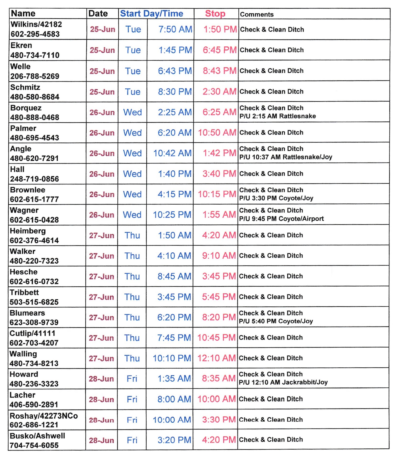 Schedule