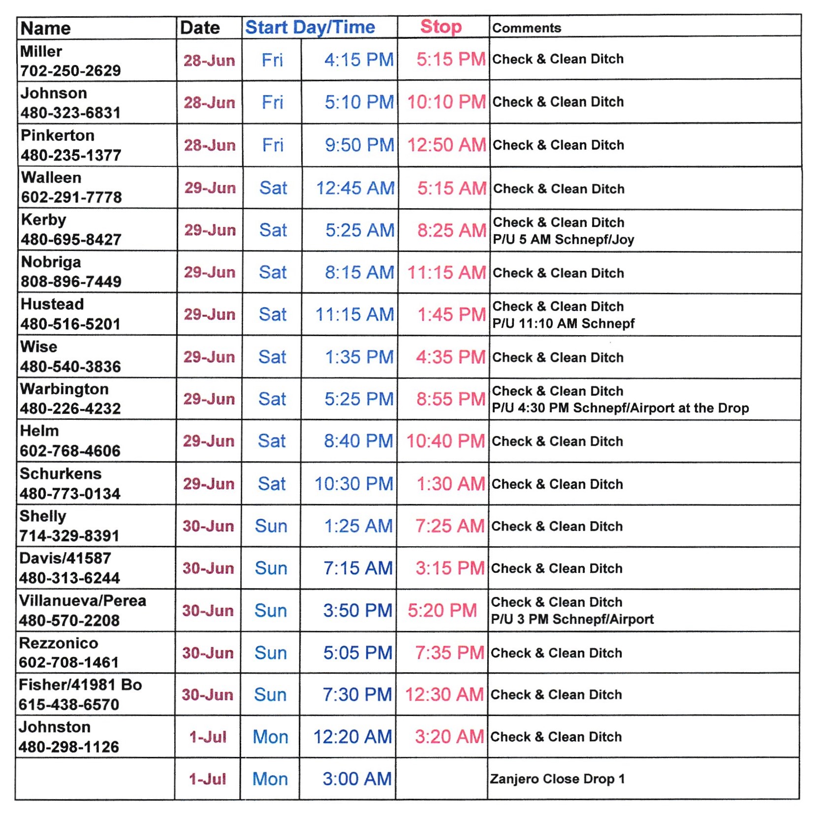Schedule