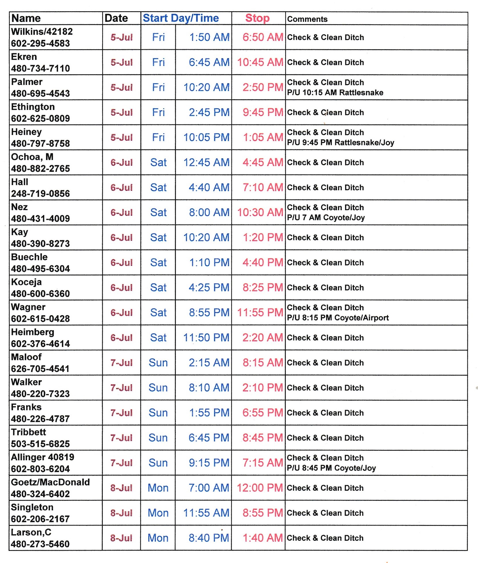 Schedule