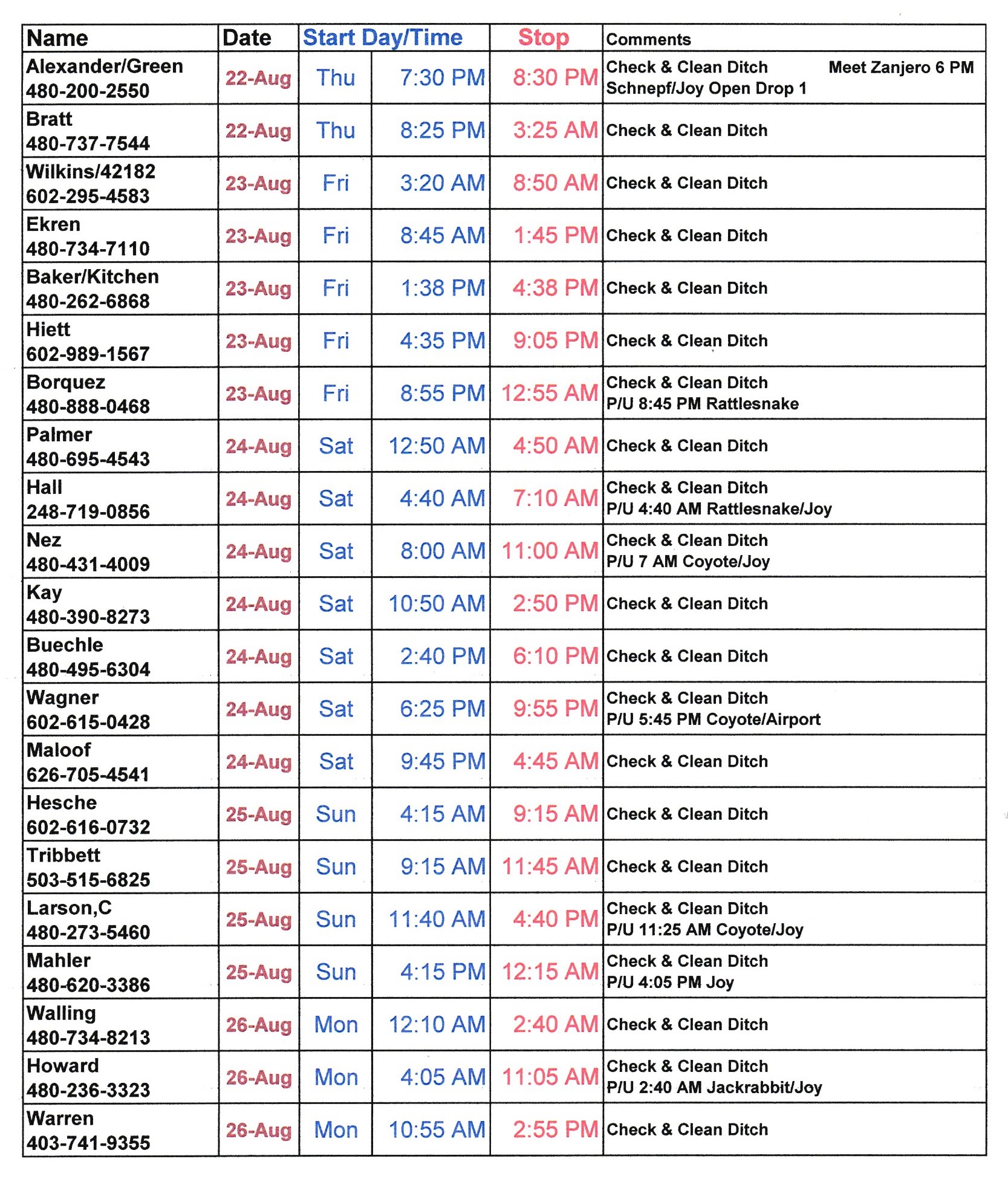 Schedule