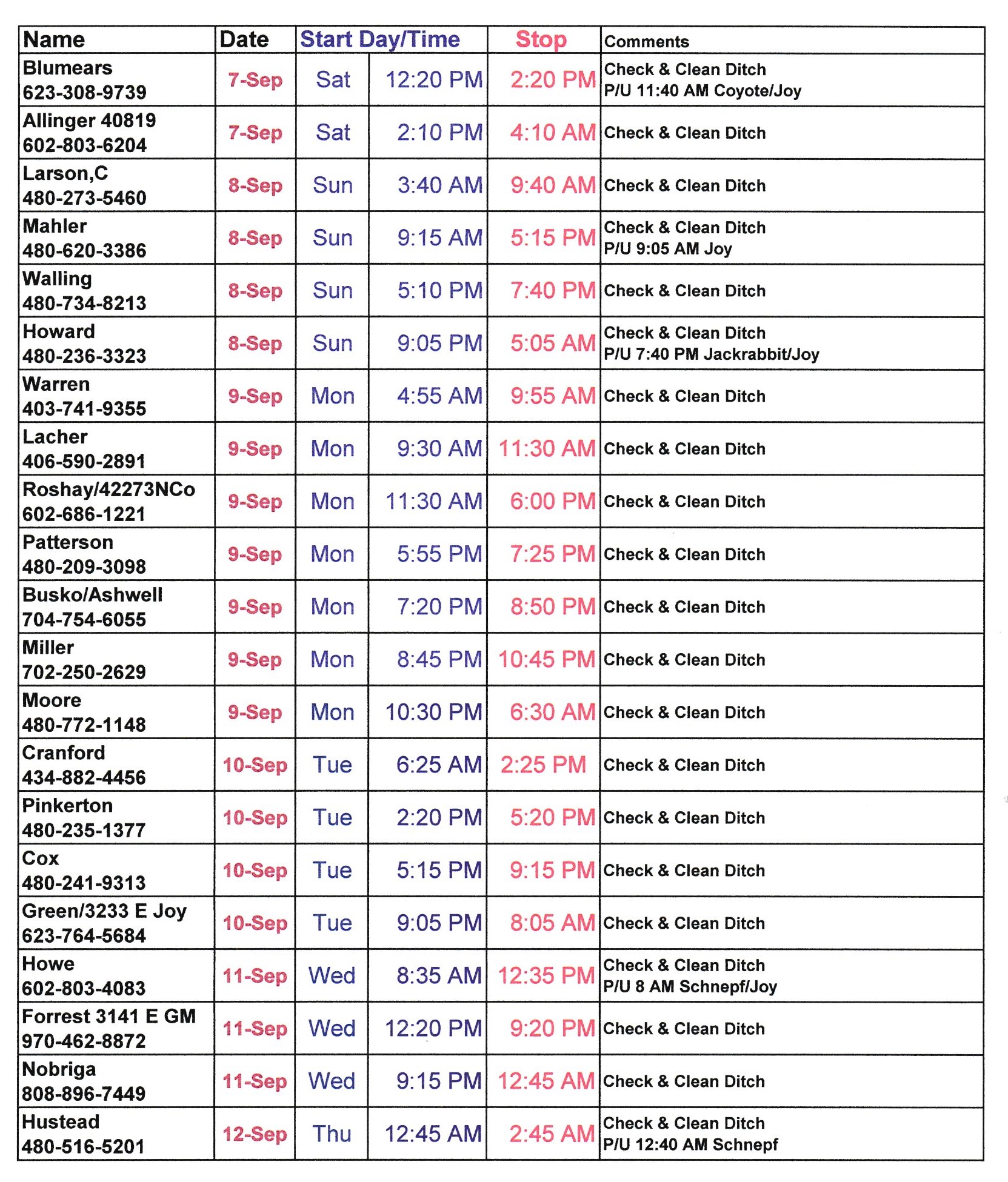 Schedule