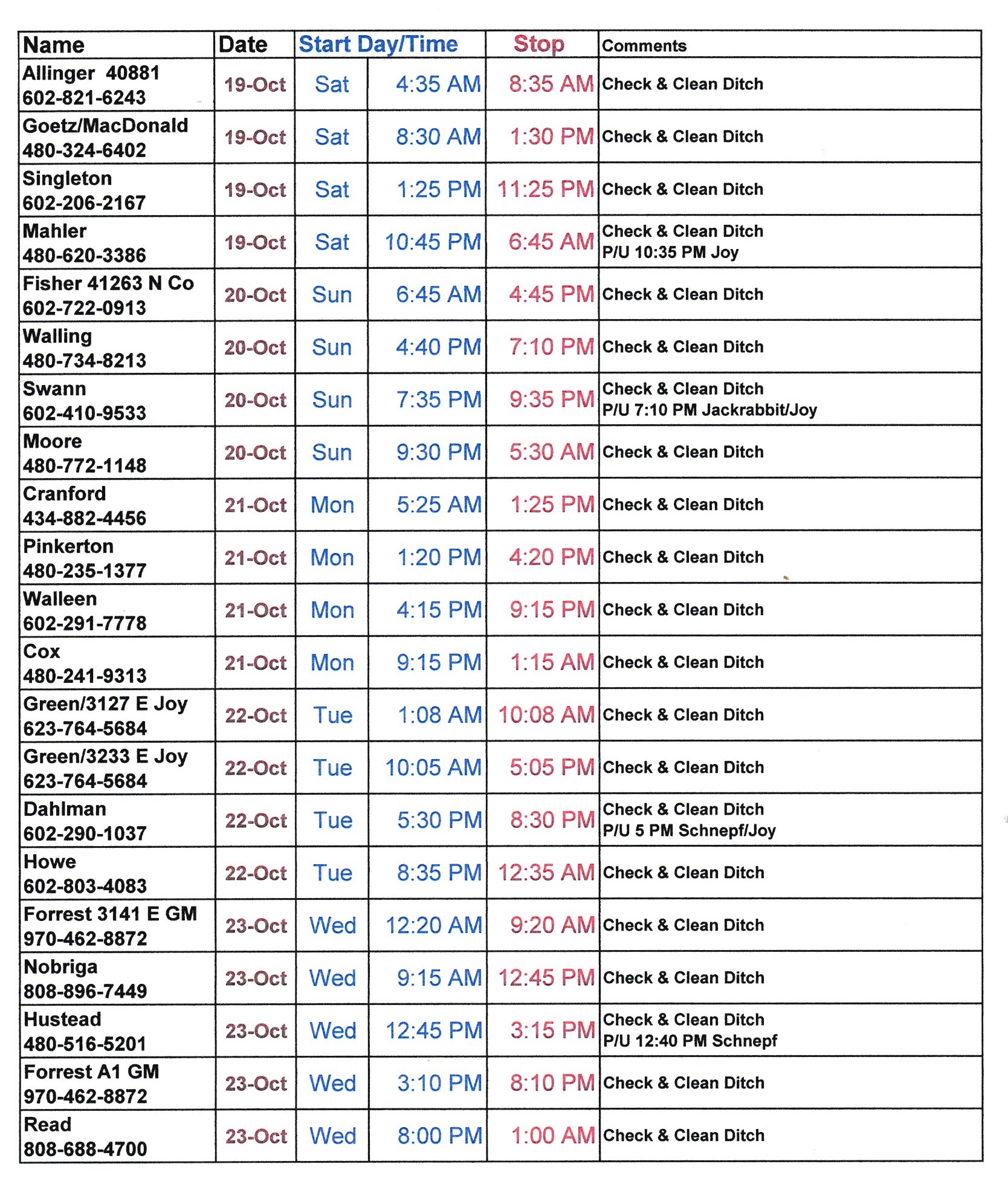 Schedule