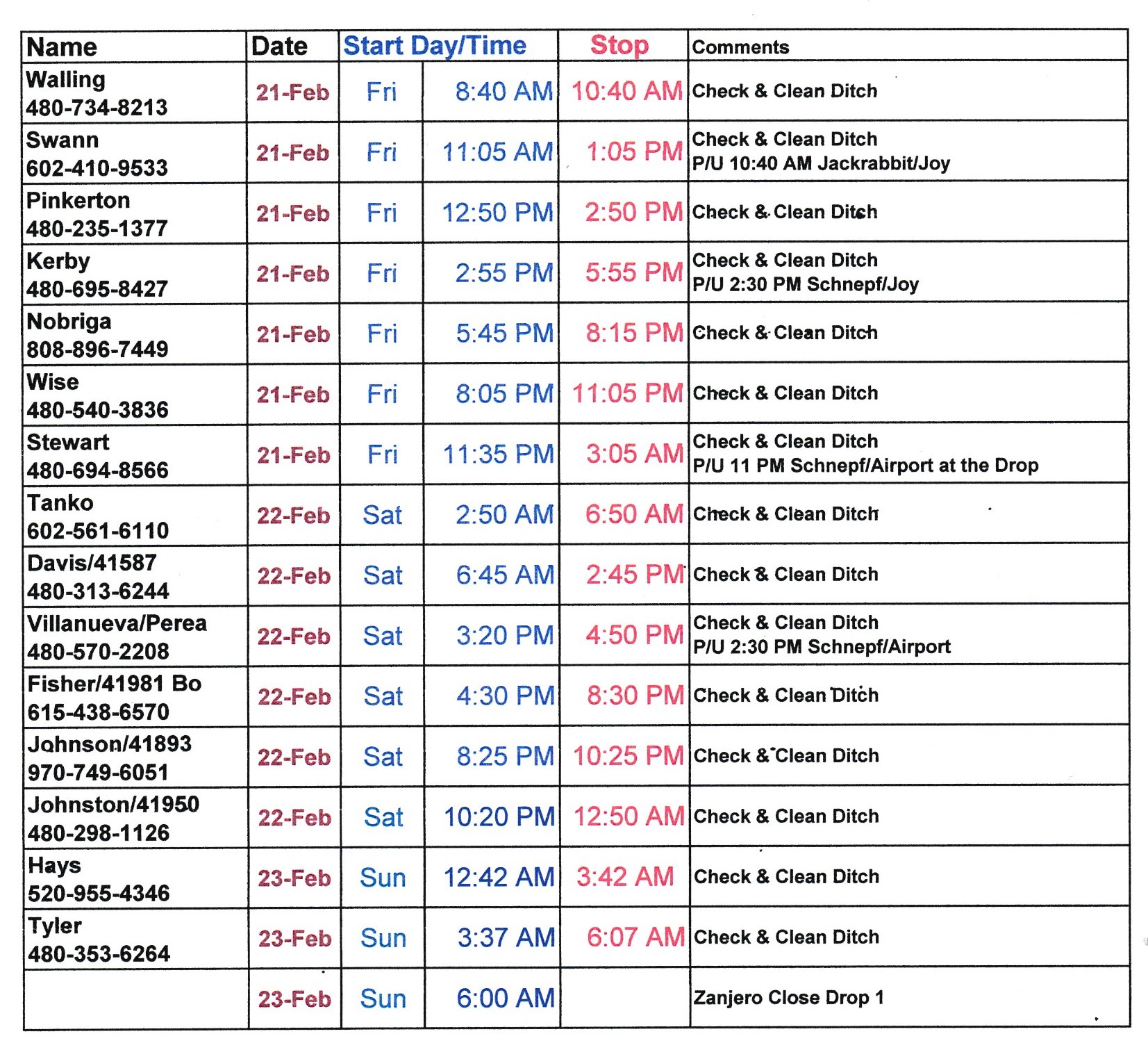 Schedule