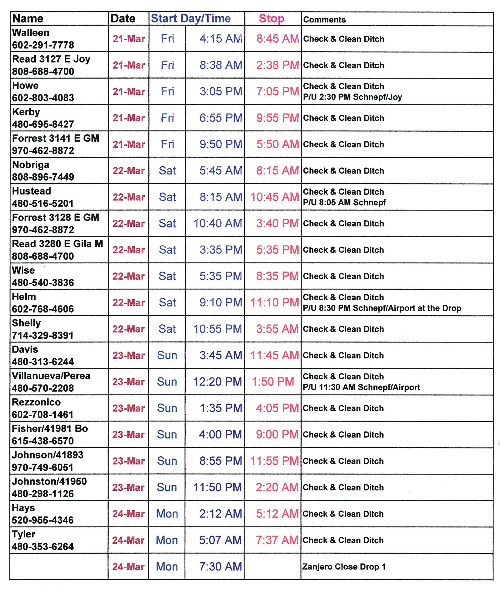 Schedule