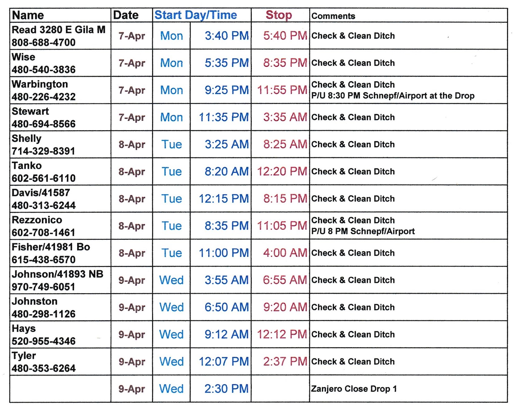 Schedule