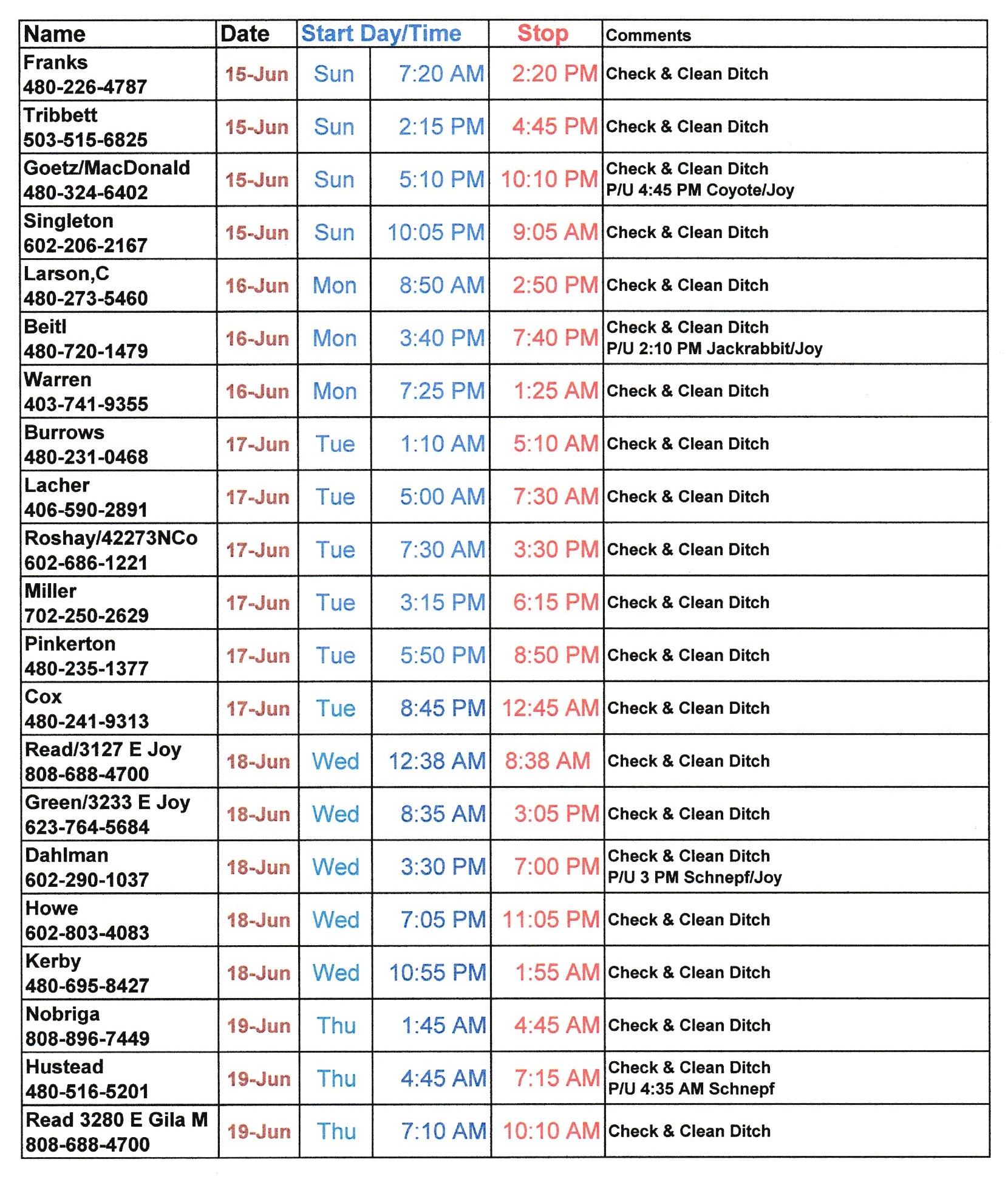 Schedule