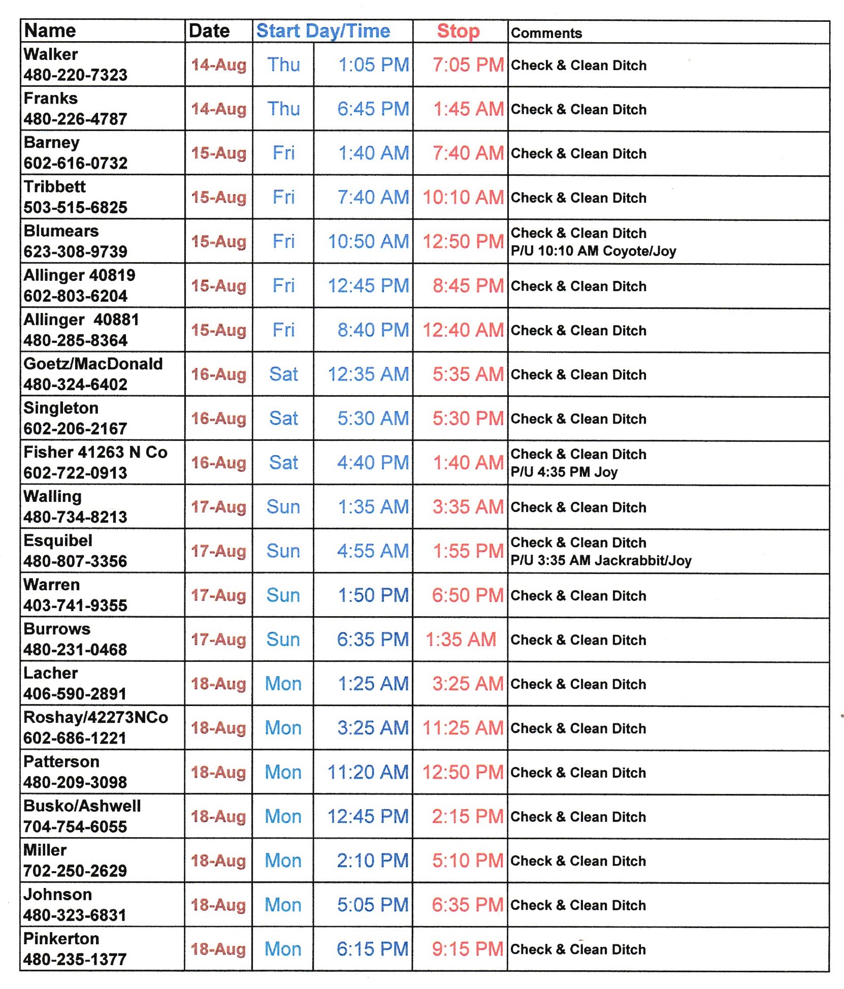 Schedule