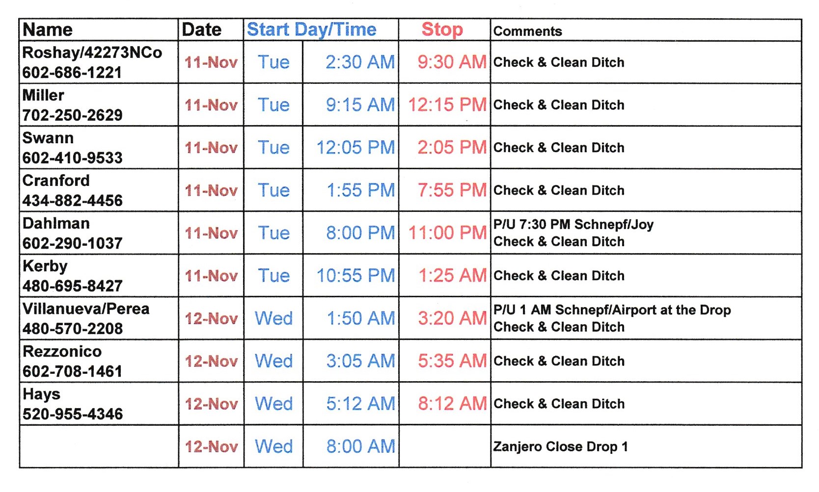 Schedule